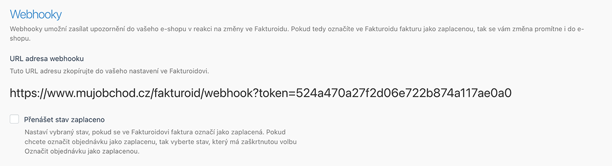 <figure><img src="https://2581951975-files.gitbook.io/~/files/v0/b/gitbook-x-prod.appspot.com/o/spaces%2F-M8g4-si8hFmKl7wXNja%2Fuploads%2FoMqcdRD77v2nCWbY4exc%2Ffakturoid-nastaveni-webhook.png?alt=media&#x26;token=c8a66255-ad70-4e98-9713-52c7ce549e6a" alt=""><figcaption></figcaption></figure>